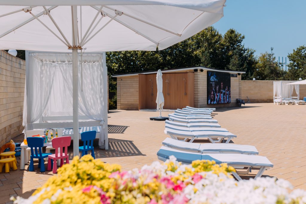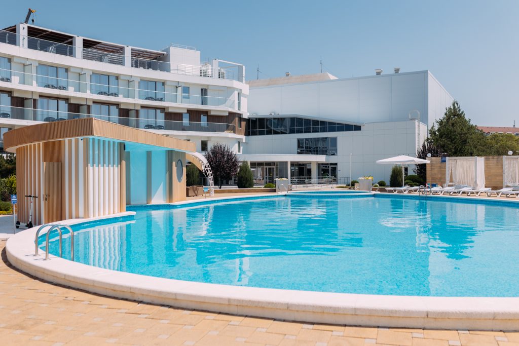 На территории отеля, рядом с первым корпусом, расположена аквазона с открытым 25-метровым бассейном, с неглубокой детской зоной.
