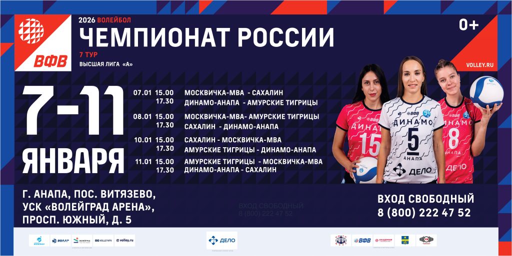 С 22 по 26 декабря на домашней площадке ЖВК «Динамо-Анапа» состоится ШЕСТОЙ тур Чемпионата России