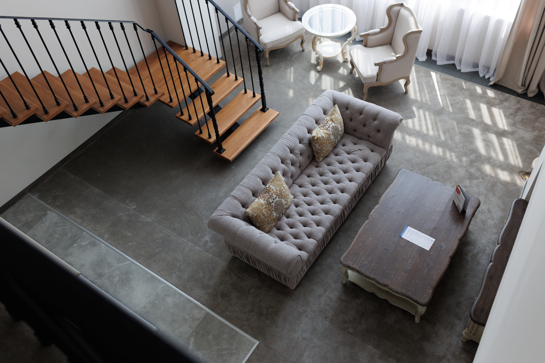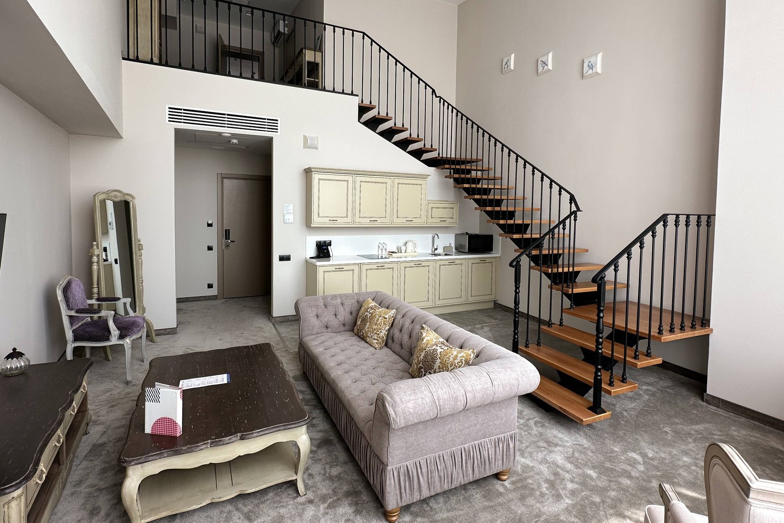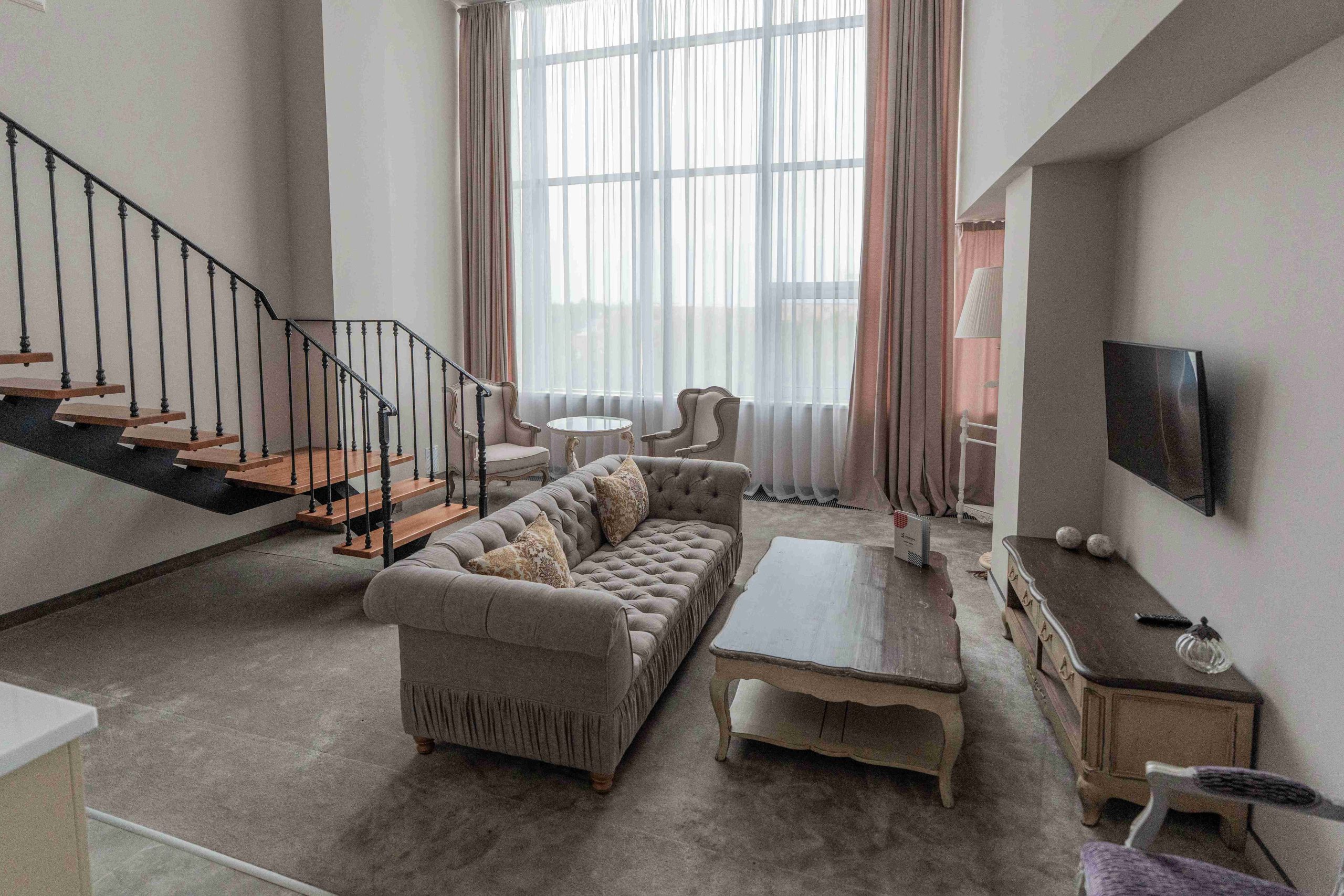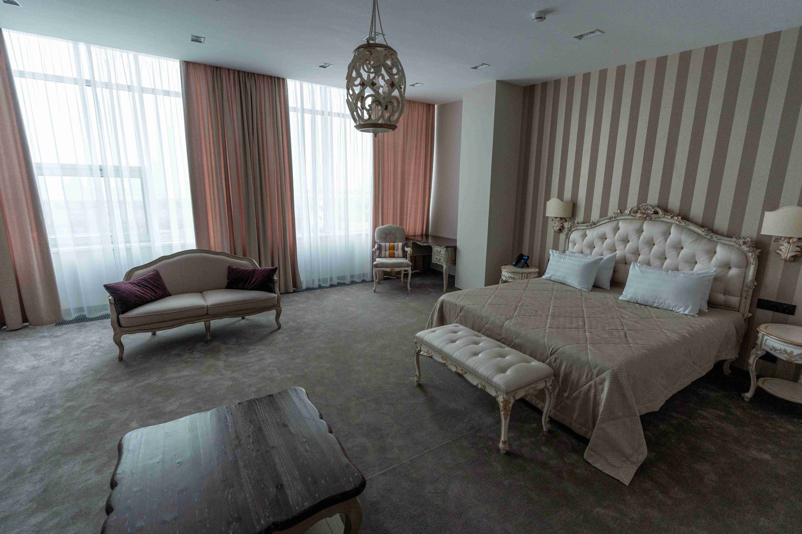 Просторный и комфортабельный двухуровневый номер в европейском стиле идеально подходит для проведения медового месяца. Эксклюзивная мебель и оригинальные цветовые решения создают уютную атмосферу. Из гостиной открывается вид на аквазону с бассейном и баром, а из окон спальни открывается вид на декоративный пруд.