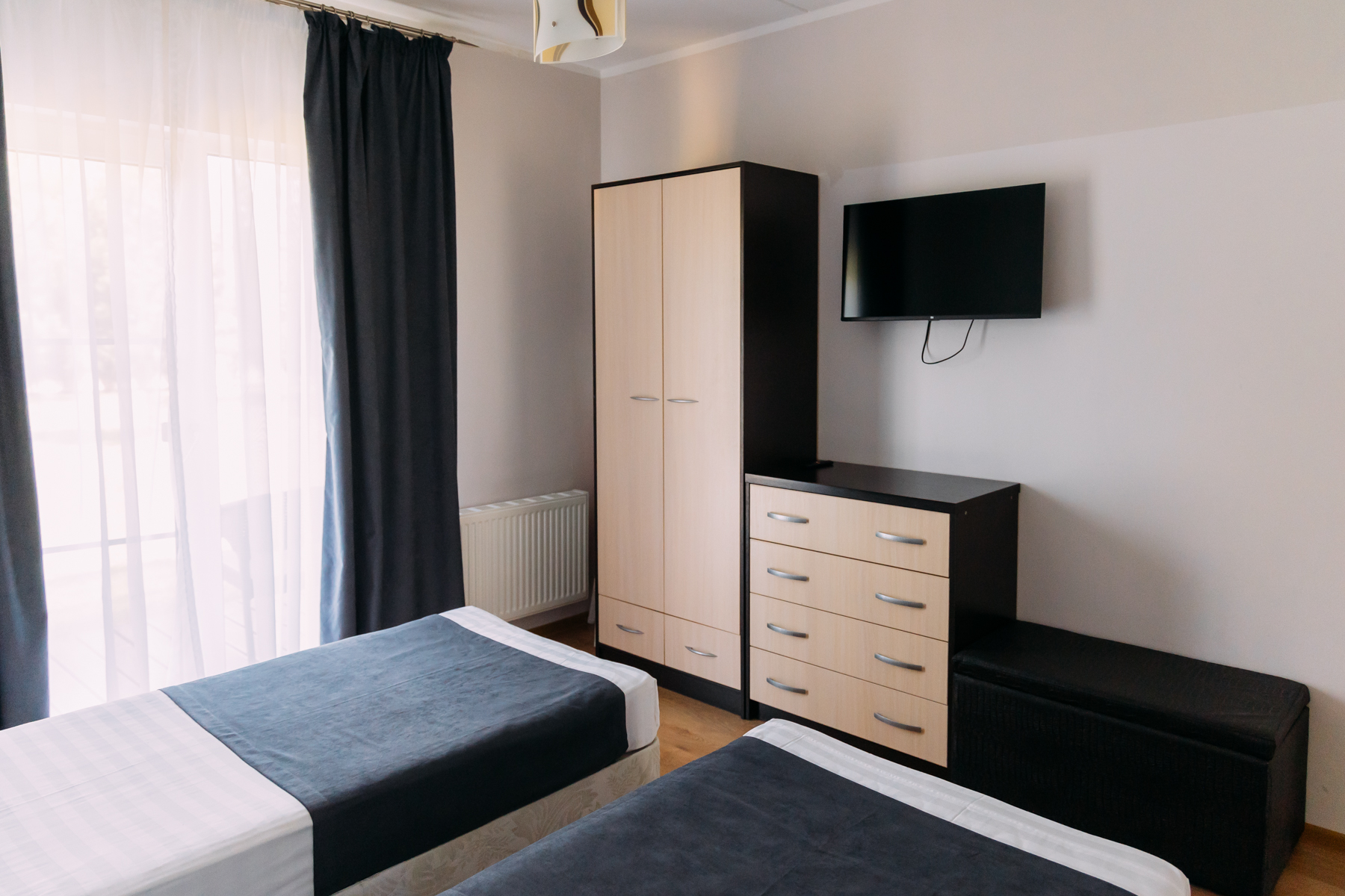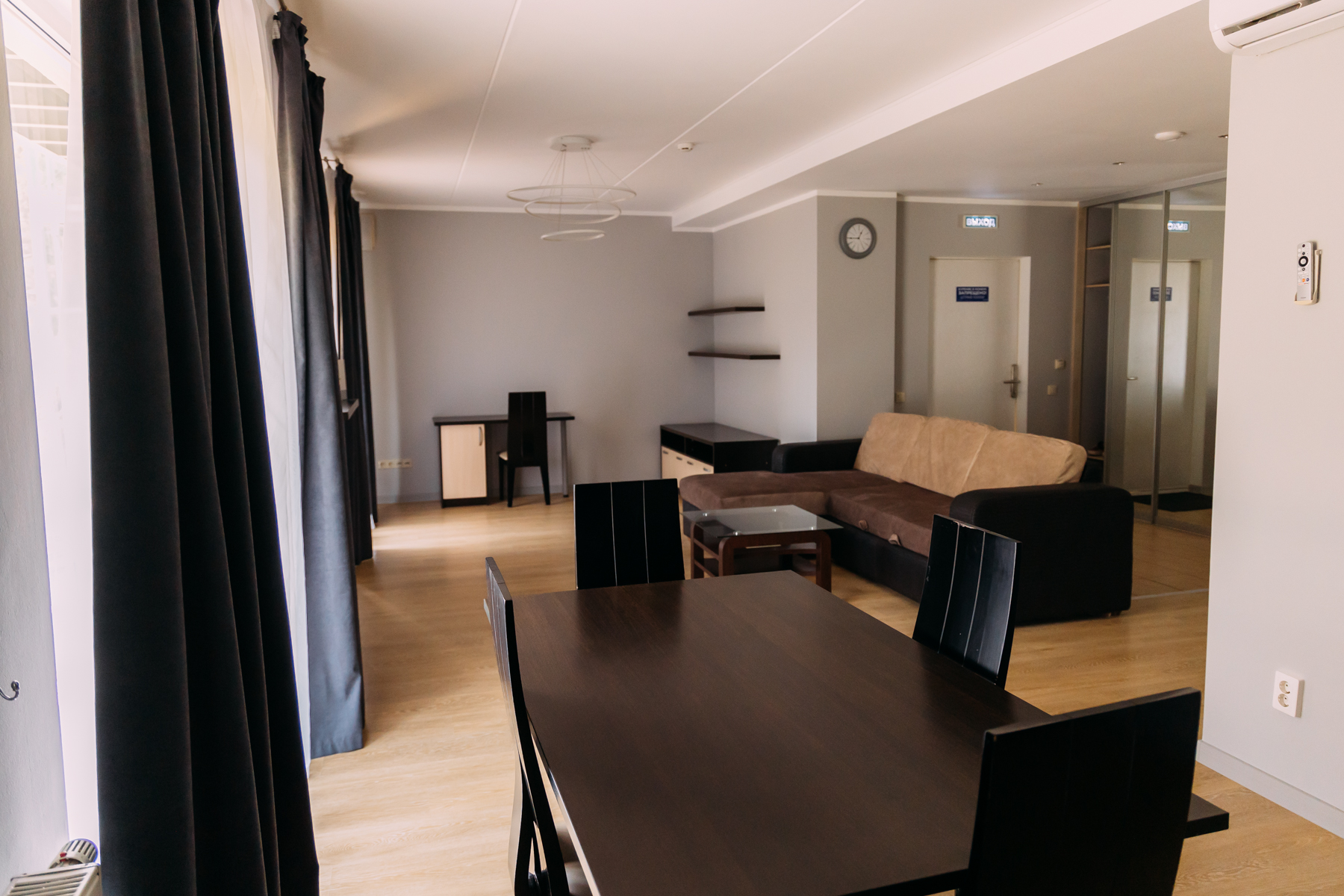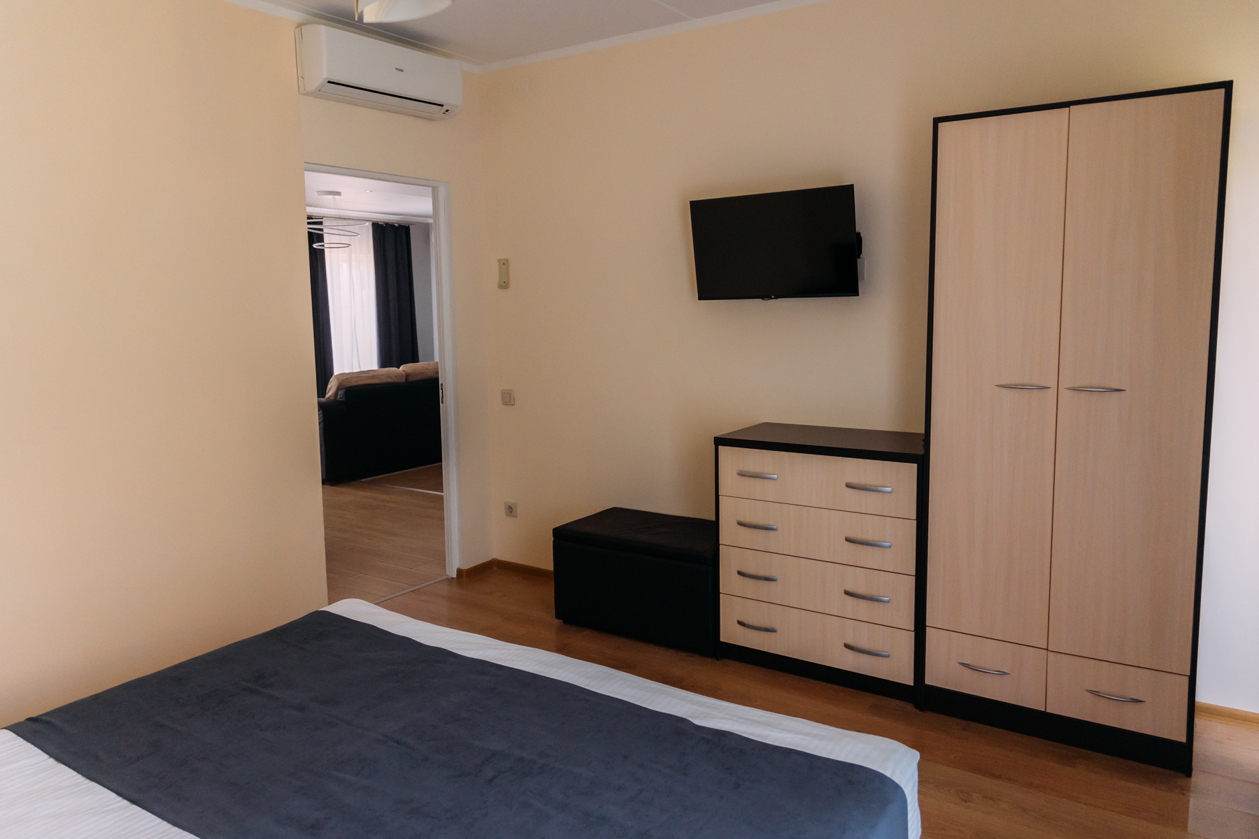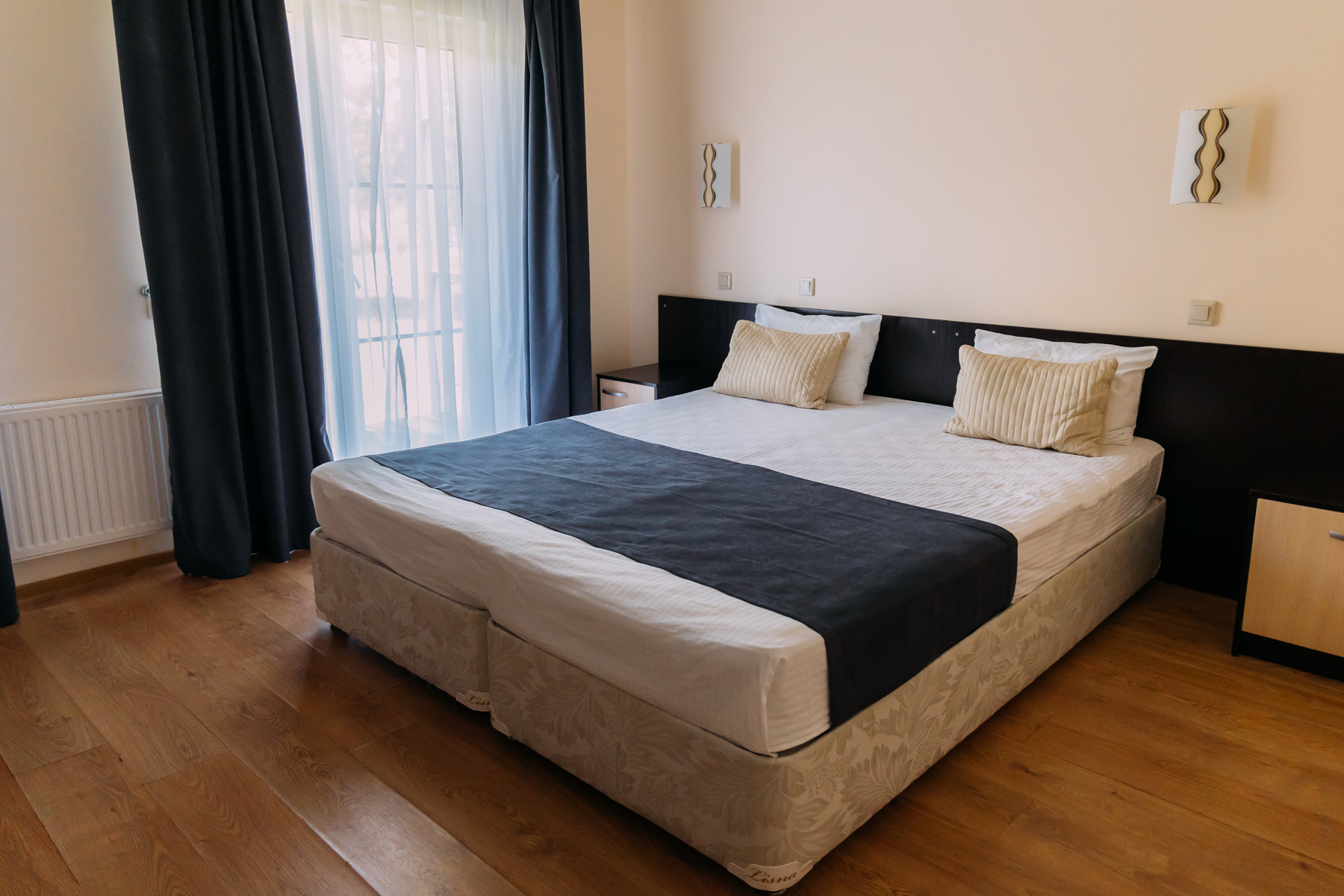 Номер для большой компании или семьи, где для каждого найдётся свой уютный уголок. А вечером после активного дня, прогулок и спортивных игр можно расслабиться в сауне, которая есть в номере.