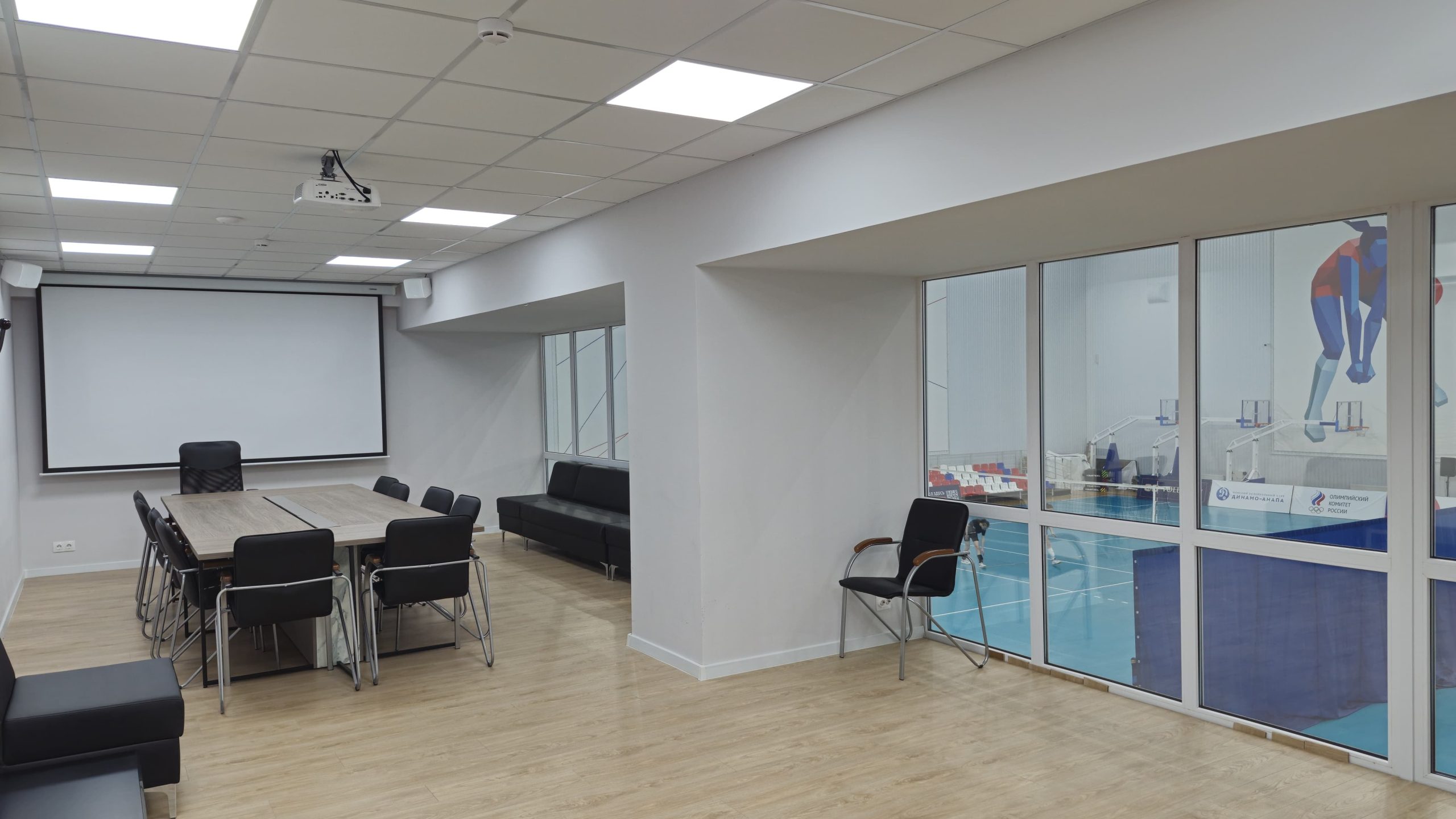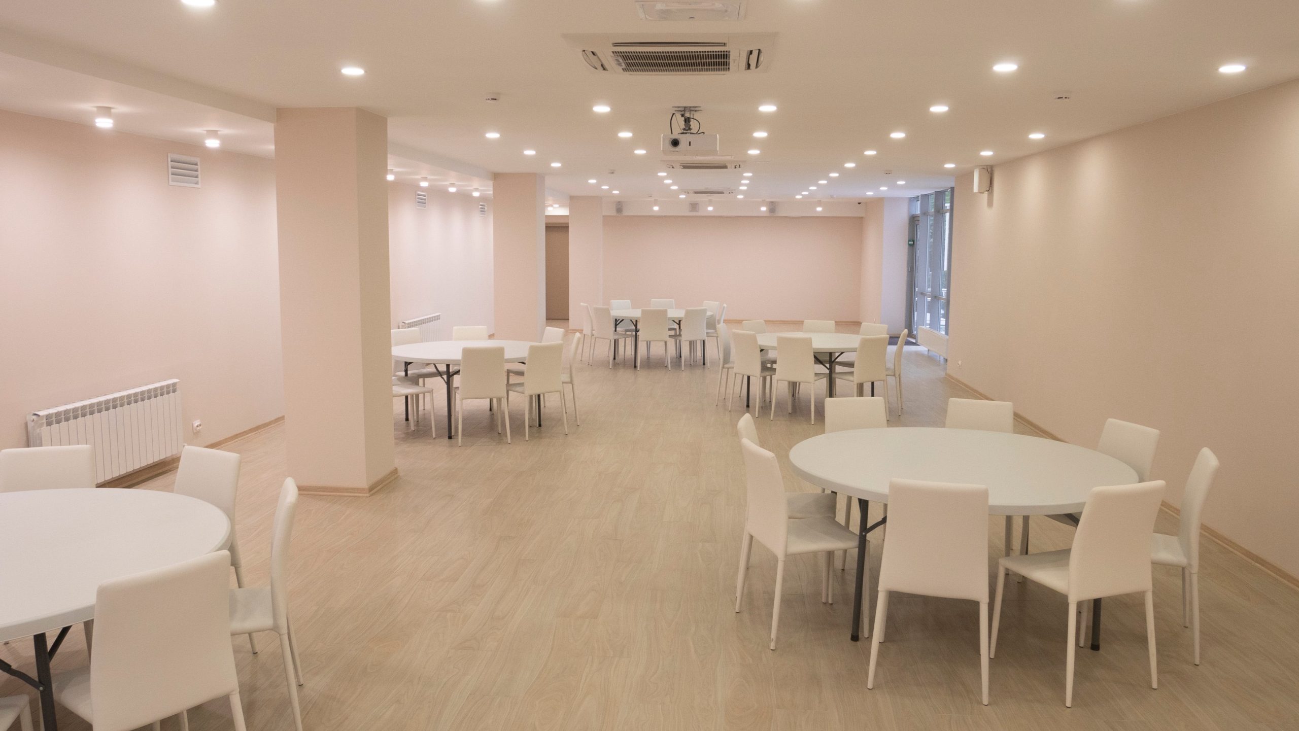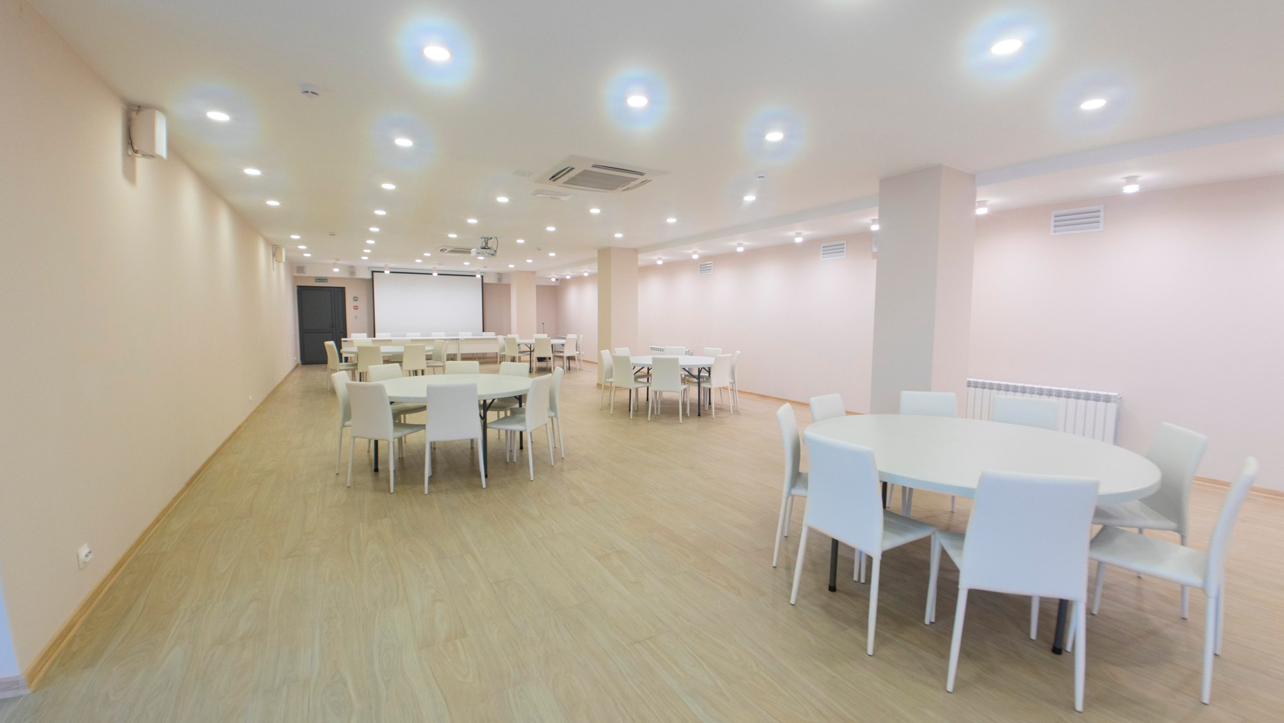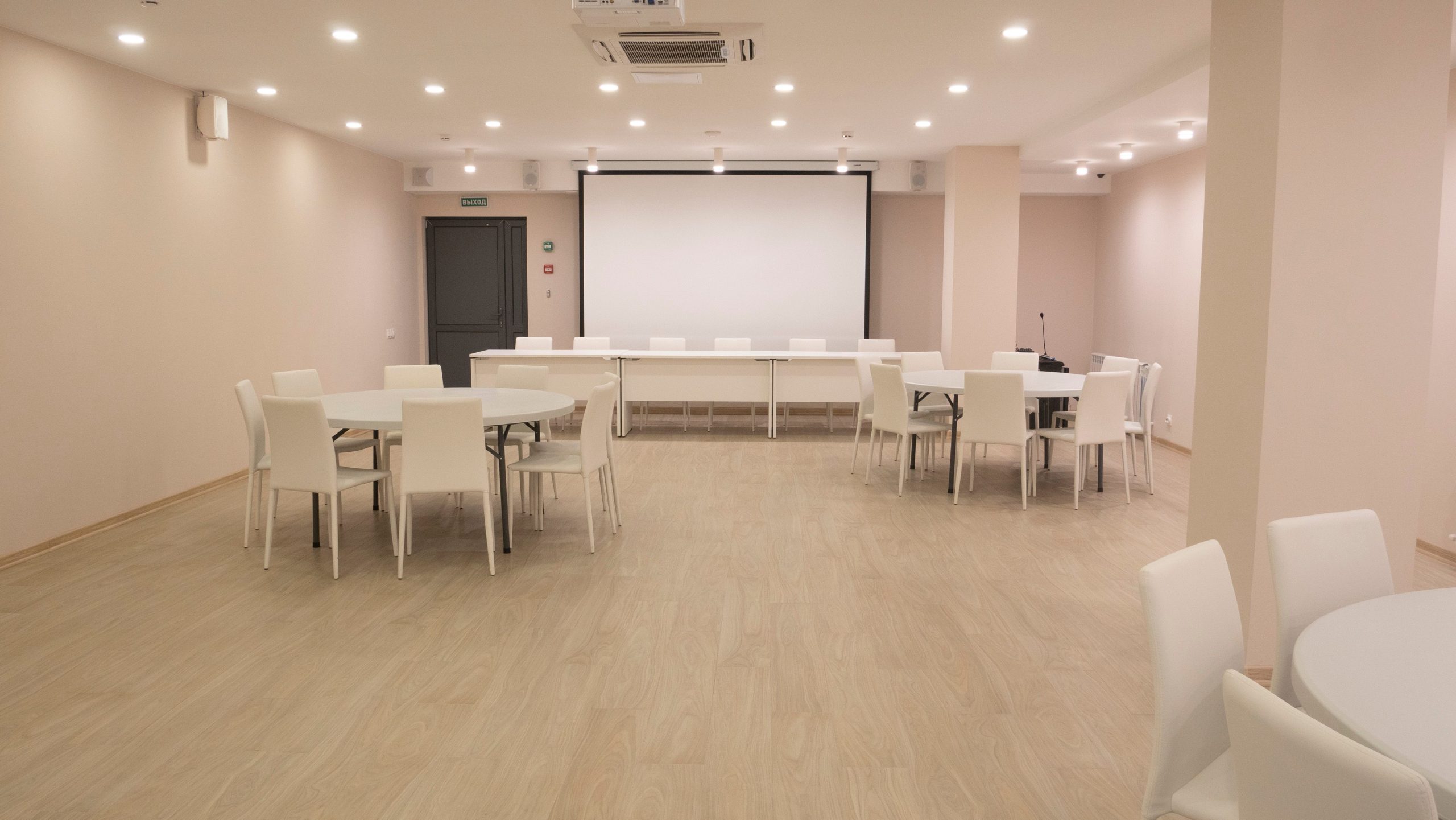Новый большой конференц-зал вместимостью на 100 человек, его площадь — 159 кв. м. Среди его преимуществ: