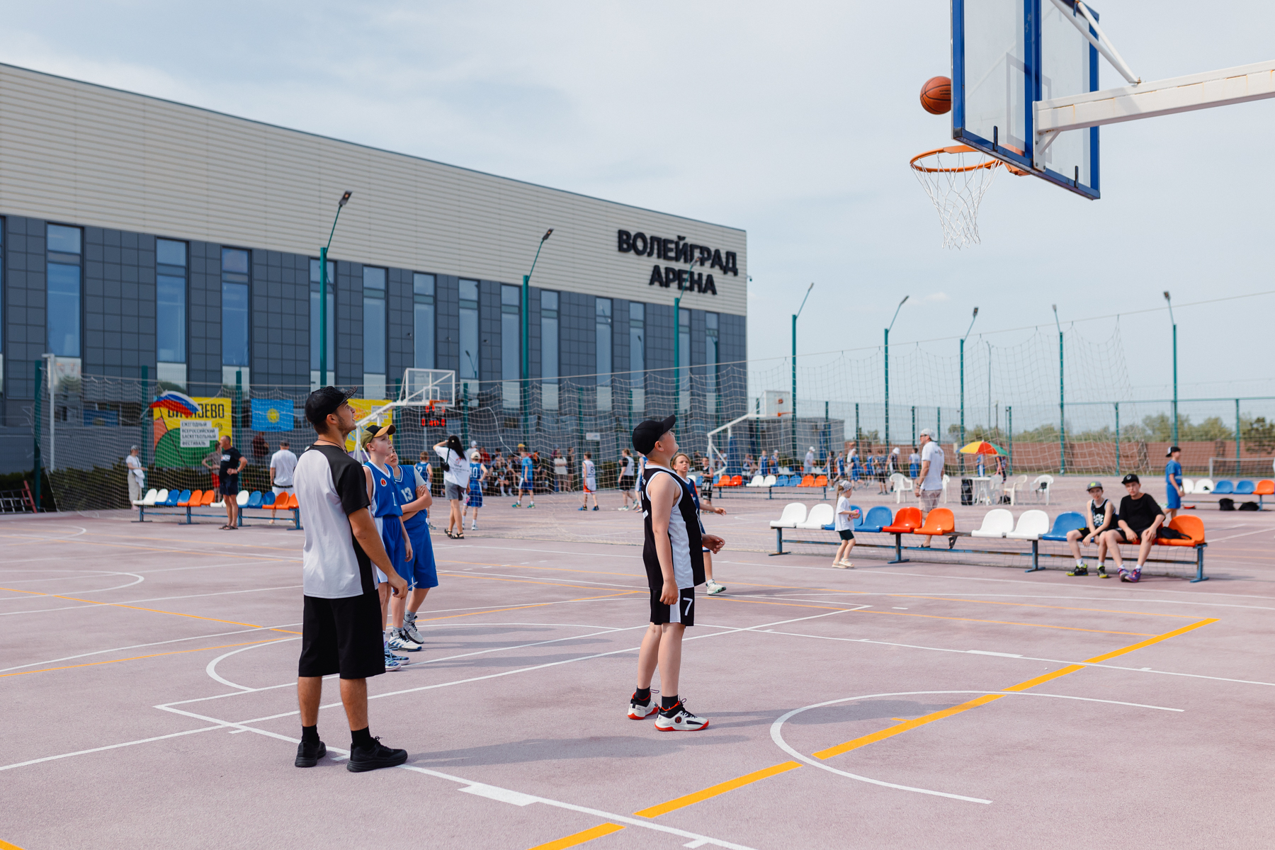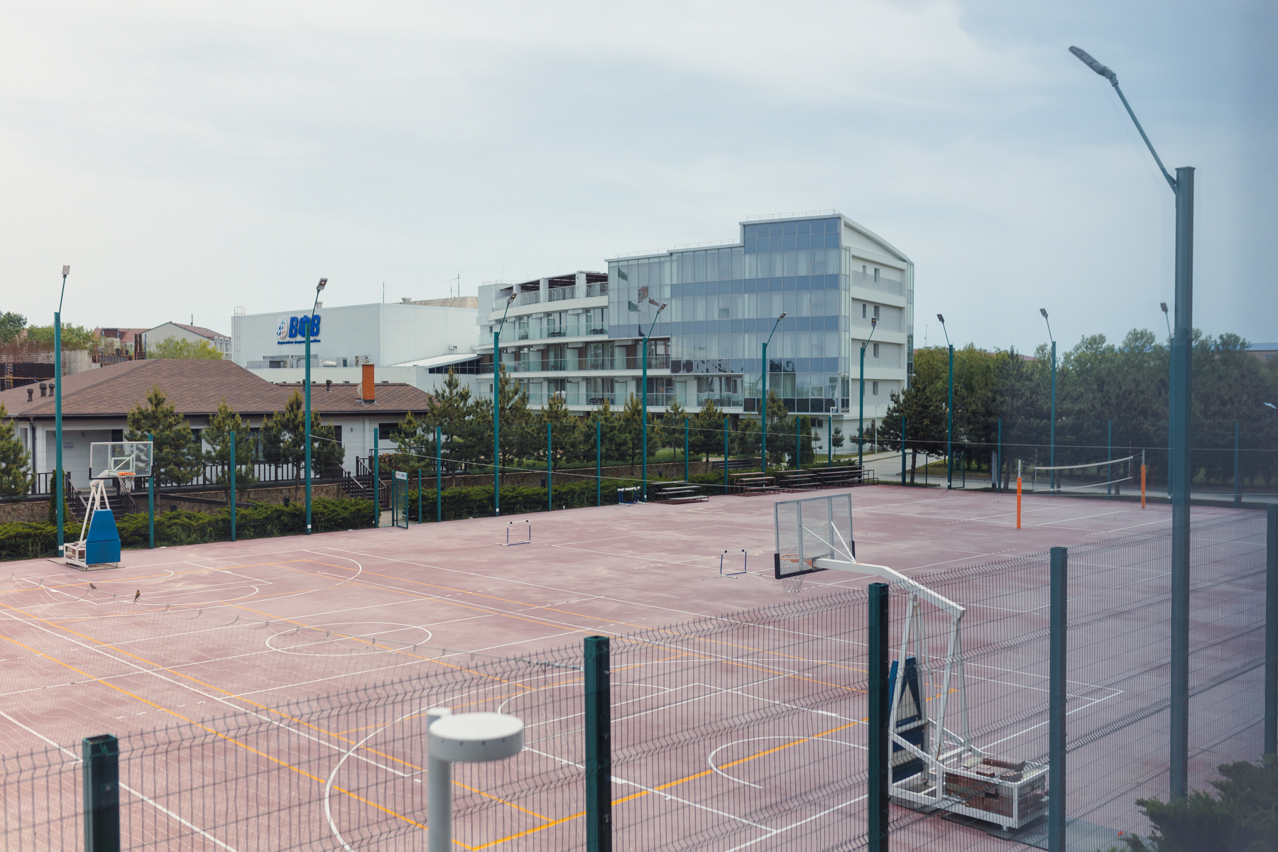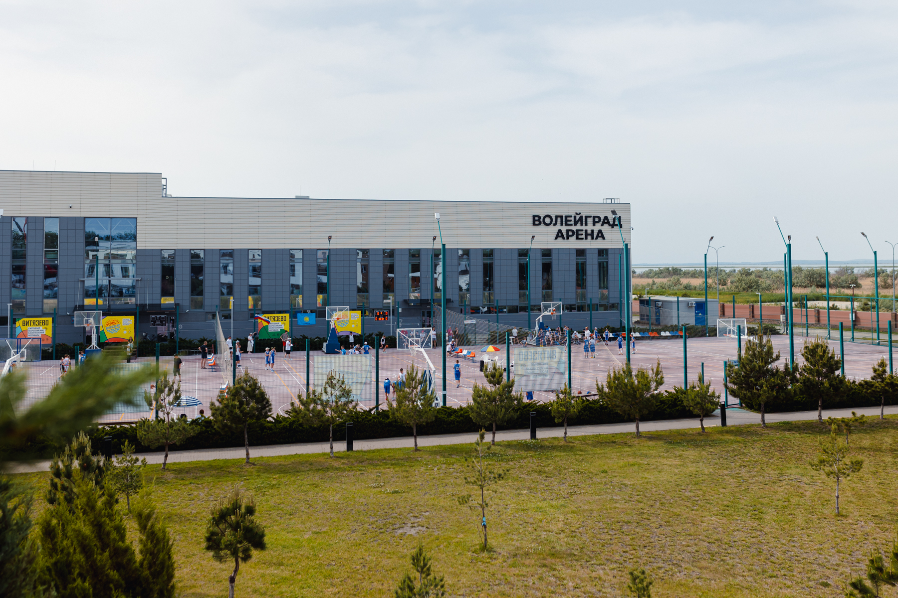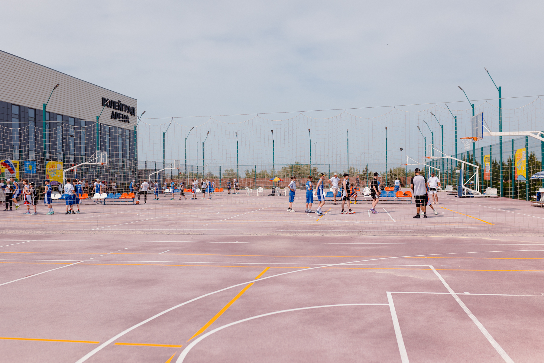 В центральной части «Волейграда», расположены 8 спортивных площадок с комфортным резиновым покрытием, оборудованных по всем стандартам для игр в баскетбол, волейбол, мини-футбол, большой теннис и бадминтон. Главным преимуществом такого покрытия являются практичность и травмобезопасность (при падении удар смягчается благодаря хорошей амортизации). Это предотвращает большинство серьезных травм, которые нередки в зонах активных игр.
